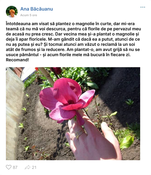 Un soi special, obținut prin încrucișarea magnoliei Sulanjii cu magnolia Nigra!